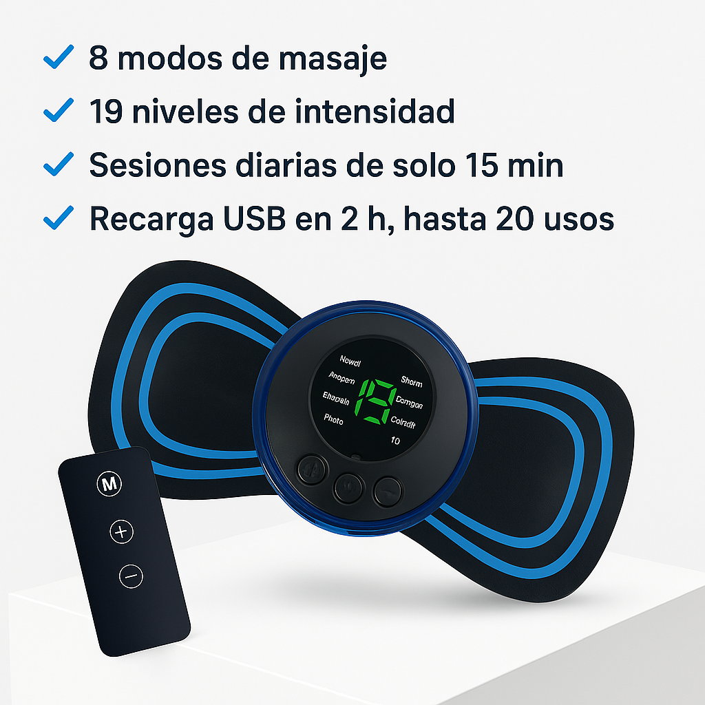 No. El masajeador utiliza impulsos eléctricos suaves que puedes ajustar en 19 niveles de intensidad, desde muy leves hasta más profundos, según tu comodidad.